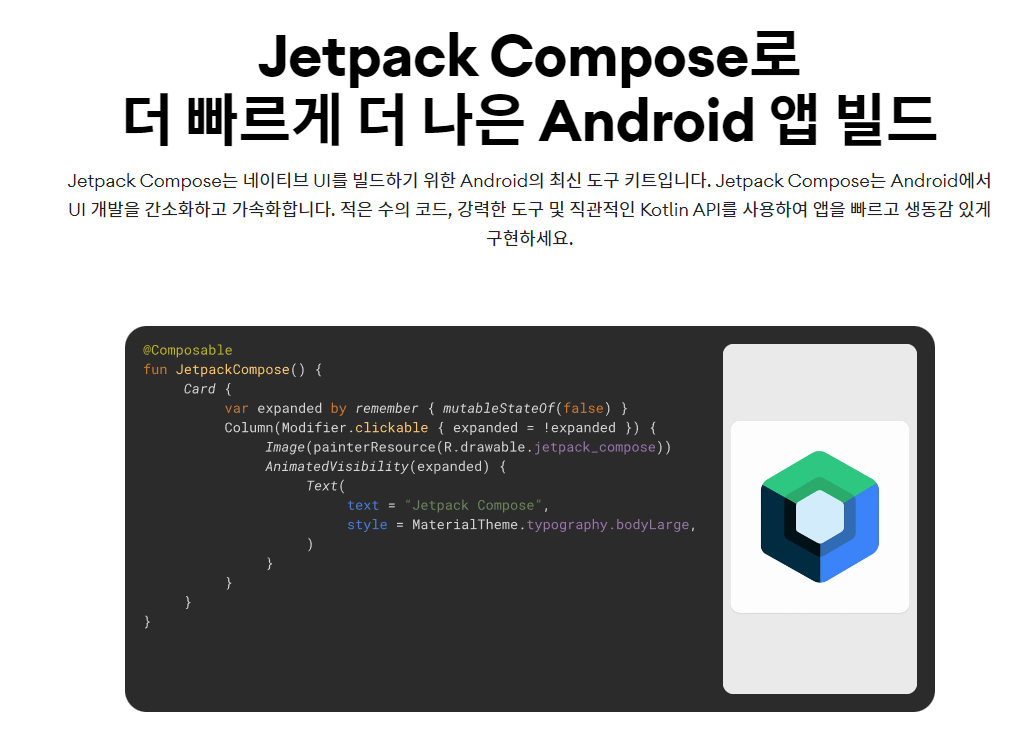 developer 사이트의 Jetpack Compose를 소개하는 소스를 참고하여 예제를 만들어 보자.
